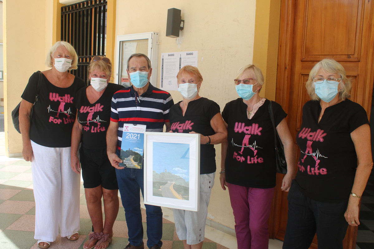 Walk for Life President, Jean Bircher, has presented The Mayor of Arboleas, Cristobal Garcia Granados, with a calendar and a framed print of the front cover photograph by Chris Pottle.