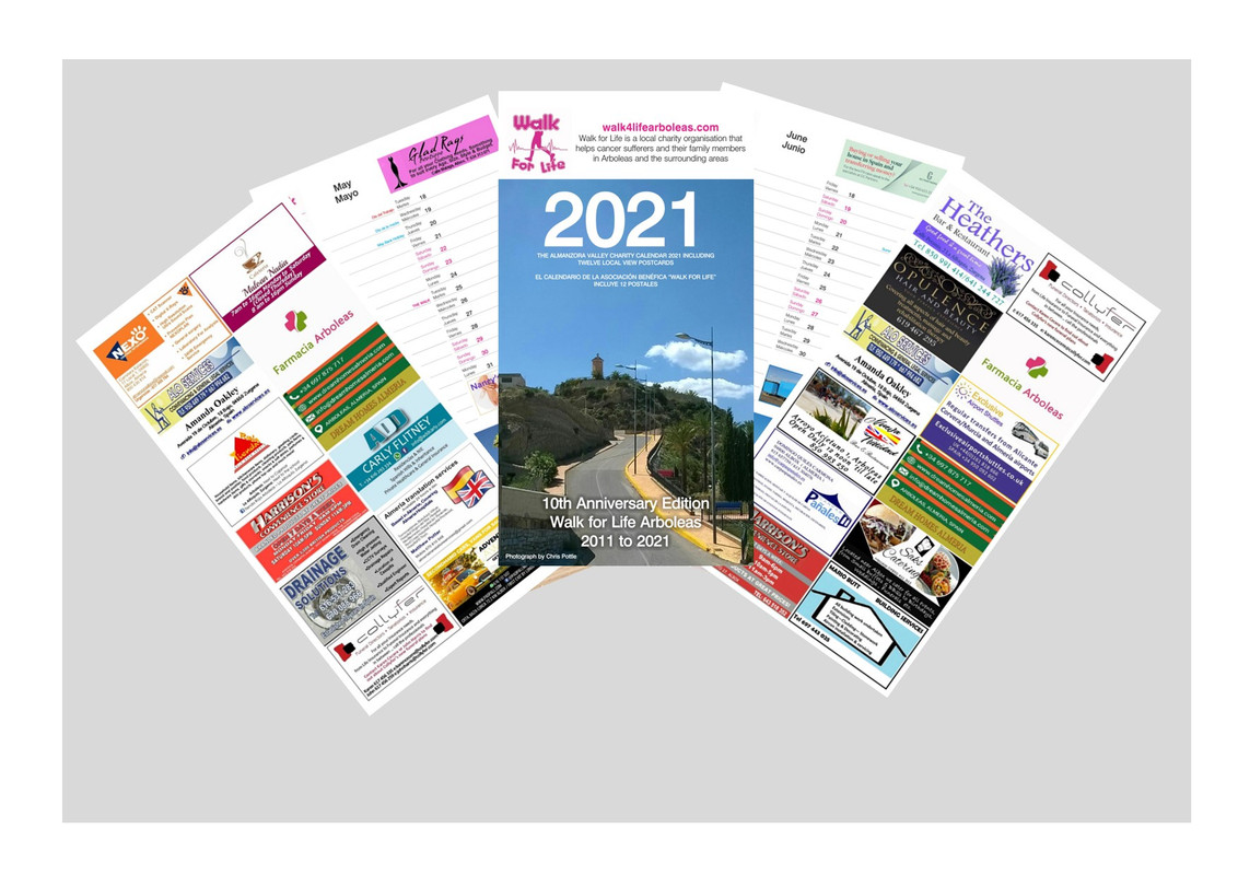 We will be producing our high-quality calendar with its beautiful photos of this area again next year. Because of changing circumstances, it will cost a little more to produce, so we have added some extra advertising opportunities. There are two 8x2.5cm ads on the months and several 8x5cm (business card sized) ads on page 1 and the back page available. All ads are €50 and we can do the artwork. If you want to raise your company profile and support this popular local charity message on here or email judi@walk4lifearboleas.com.