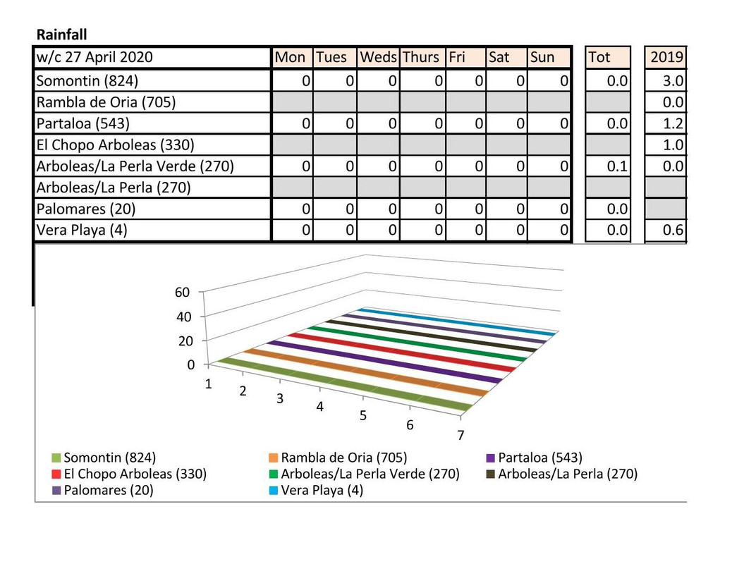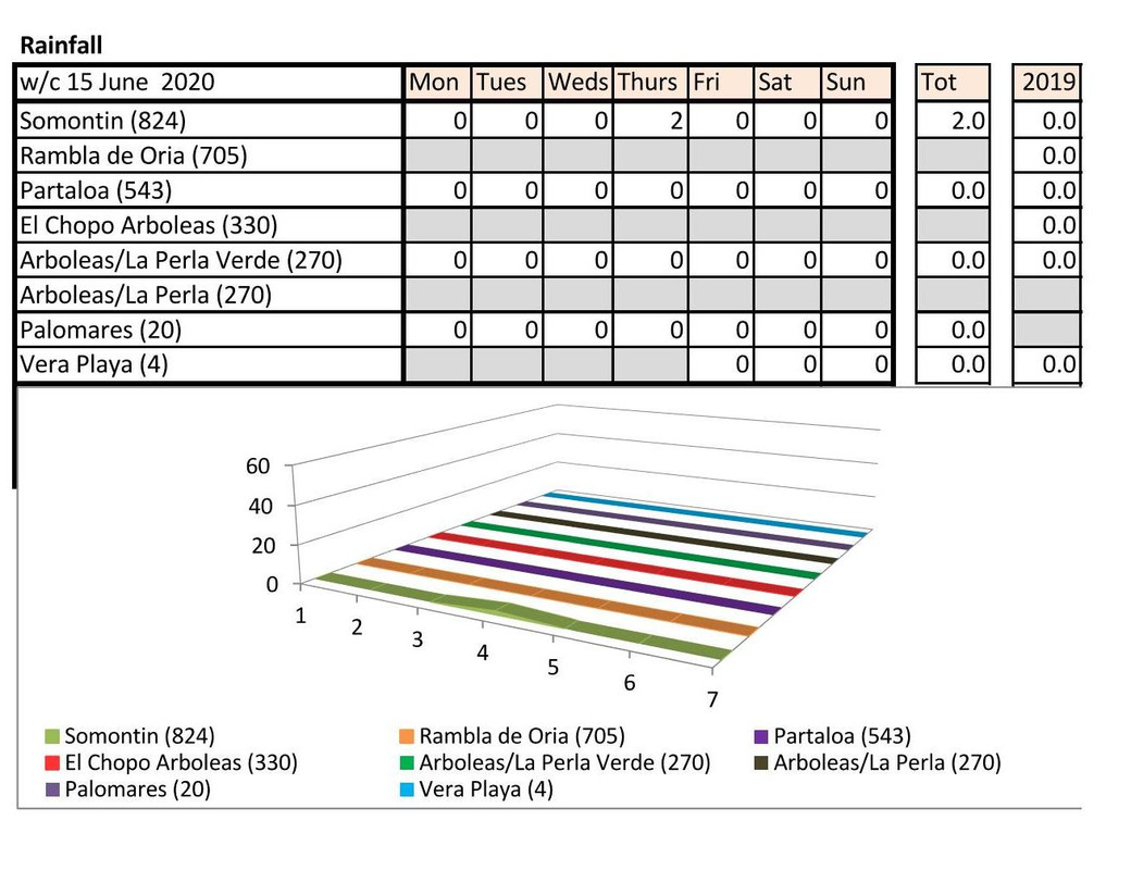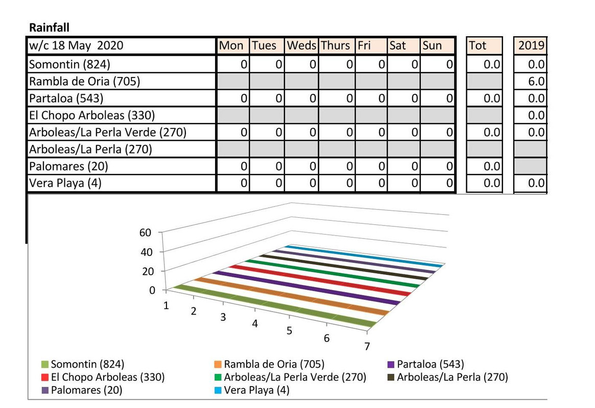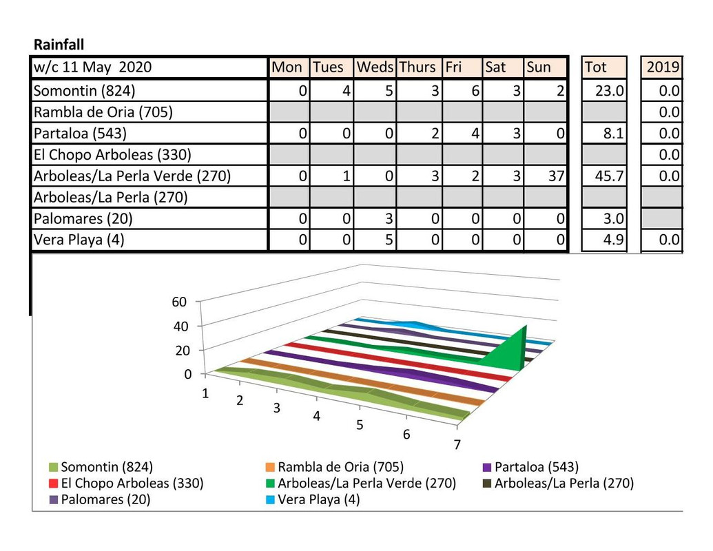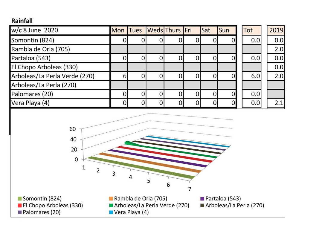 Rain - non last year just 0.01 Vera Playa on the Sunday this year - presume that is a few spots
