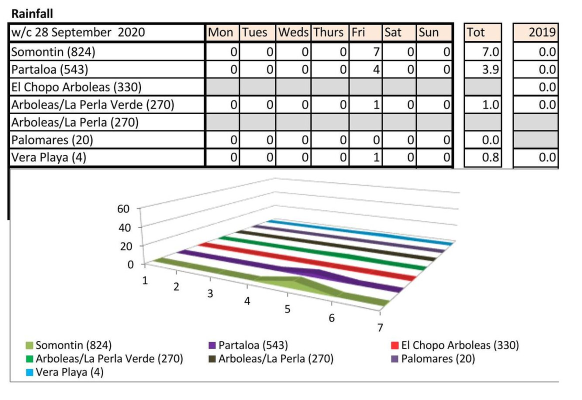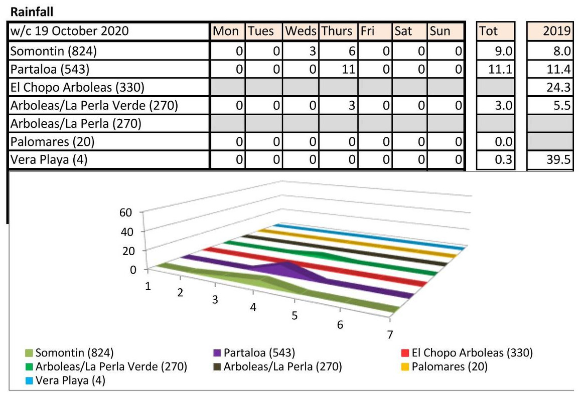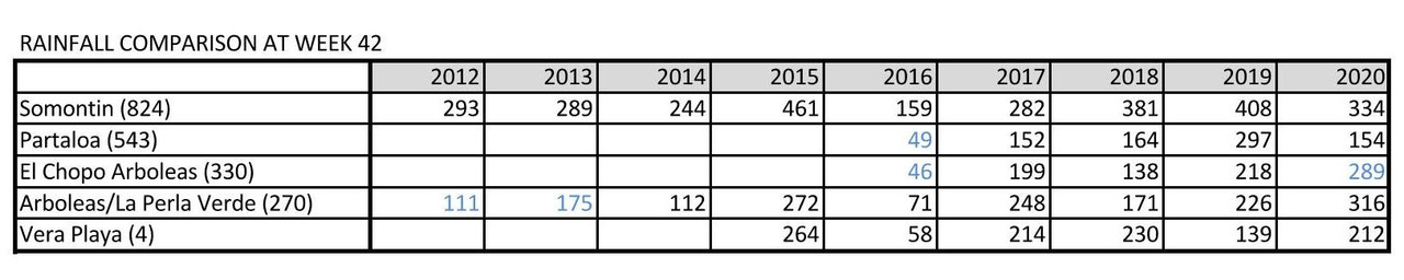 I had been wondering about the low rainfall. Here is a comparison back as far as my stats go. Blue figure indicate some weeks rainfall amounts are missing but none are more than 3
