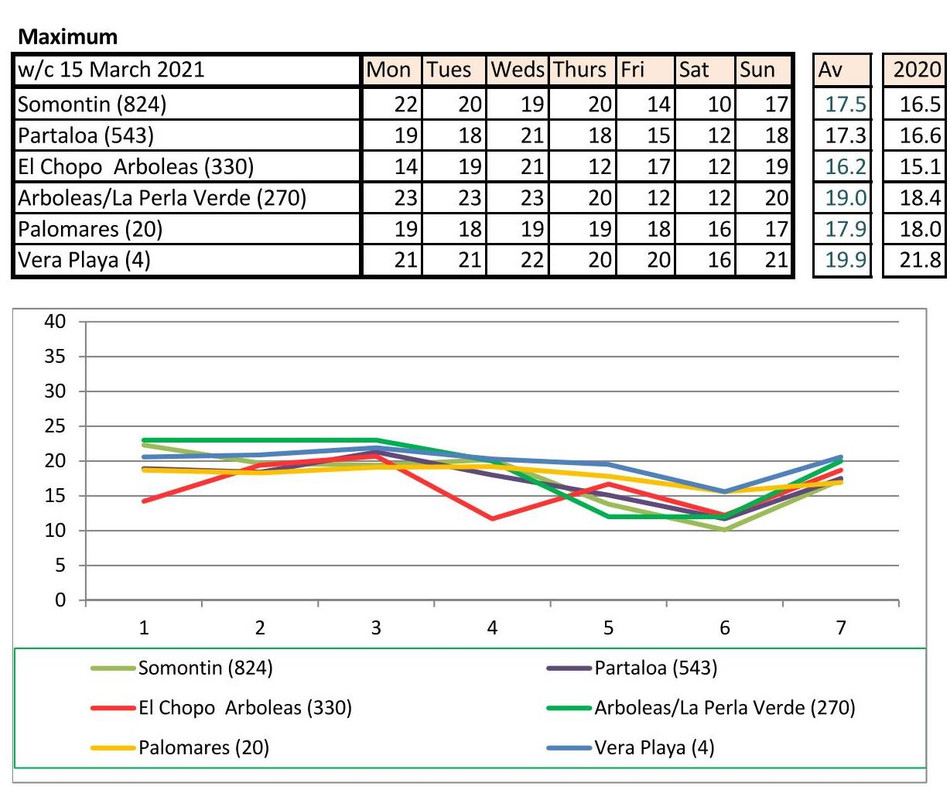 From March 1st, more rain and therefore cooler than last year.