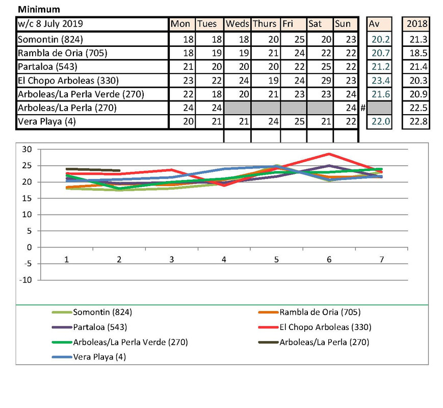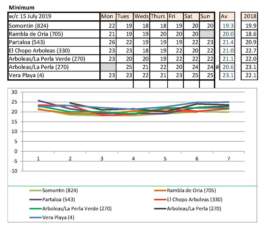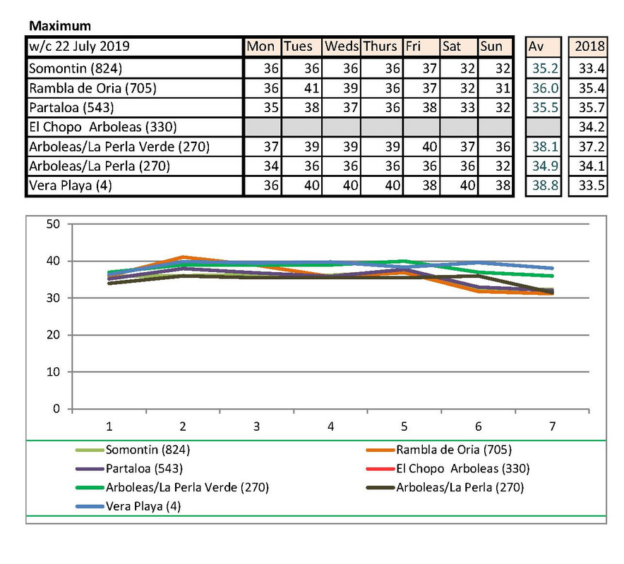 Week from 22nd July. A little hotter this year, but you knew that! Surprisingly, this year, it isn't cooler on the coast