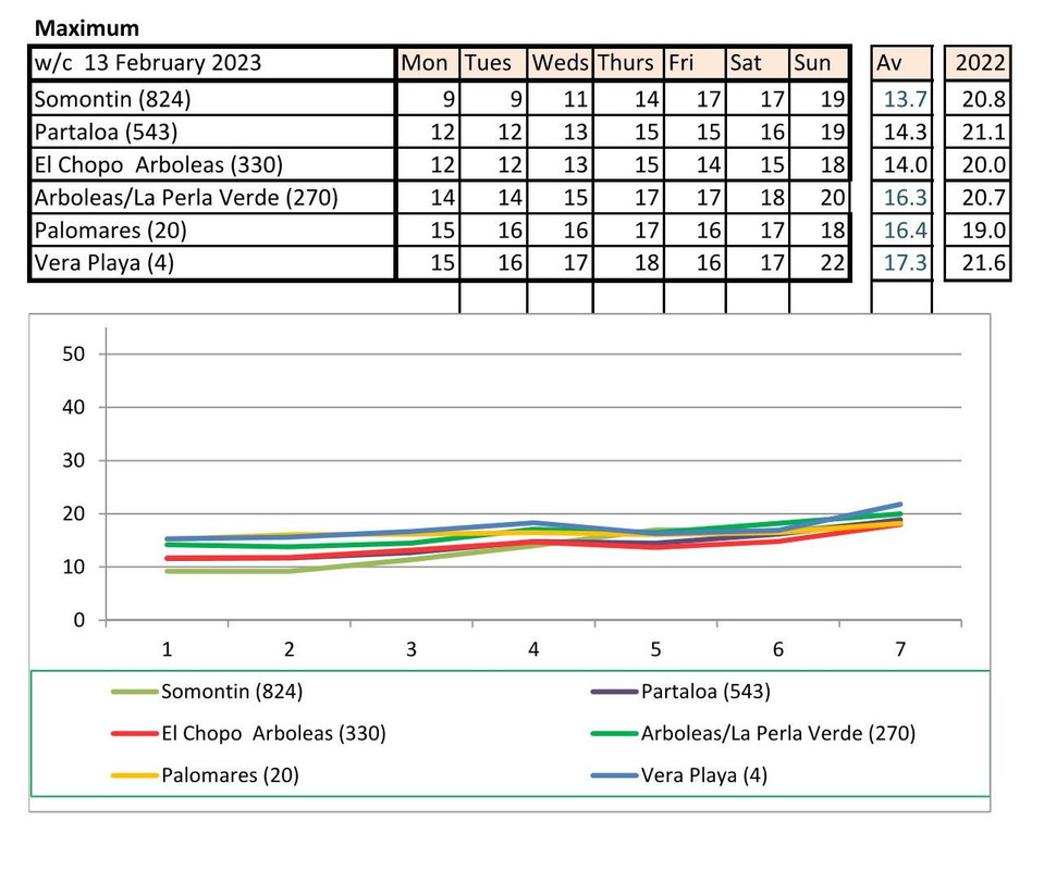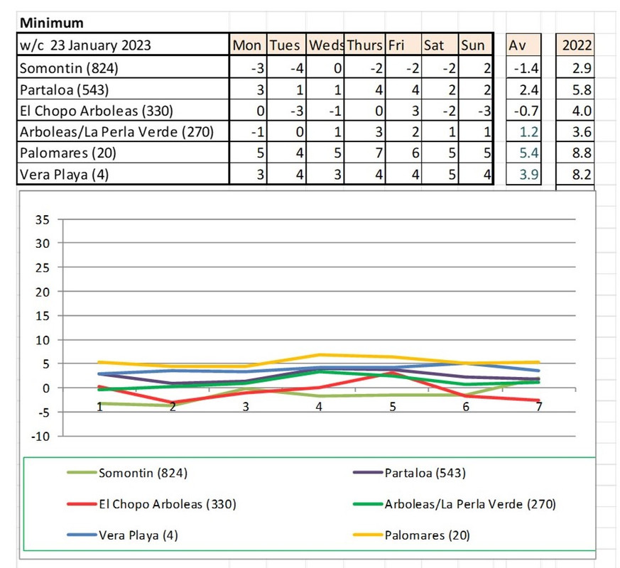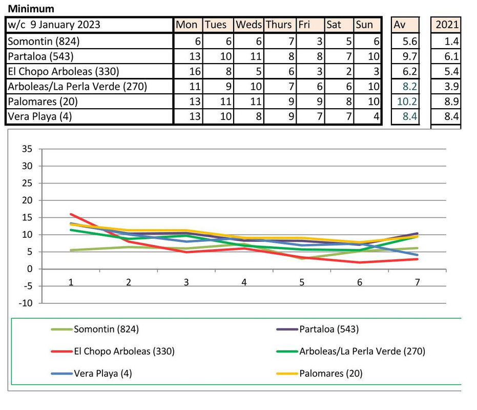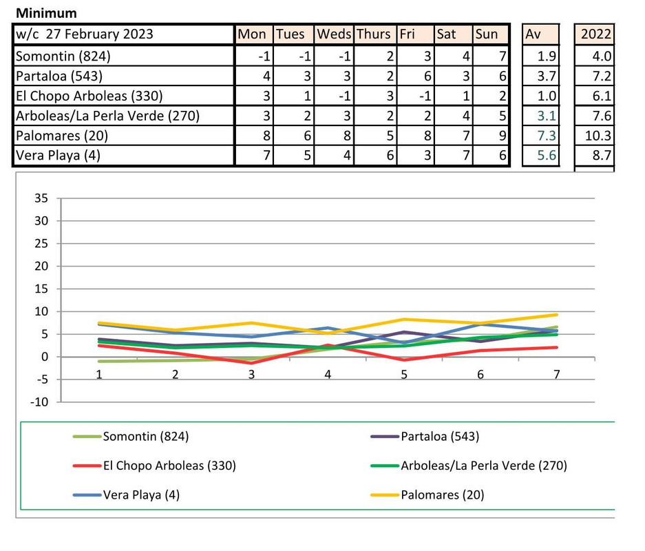 From 9th - mostly warmer this year (off to Baza on Monday - it says -5 - feels like -12!!!!)