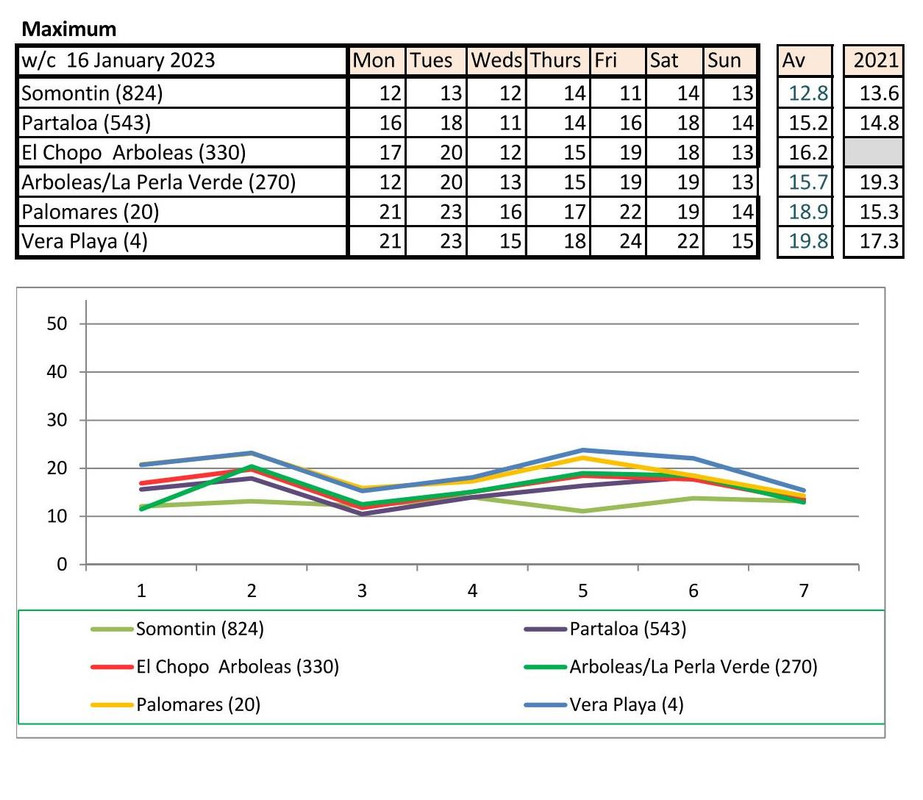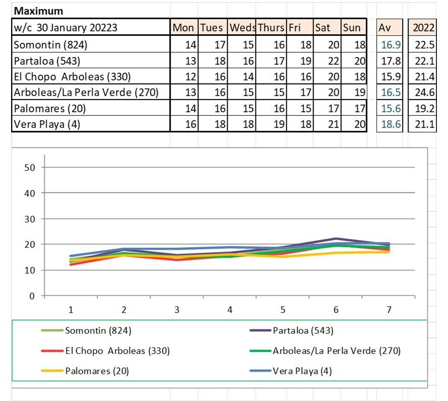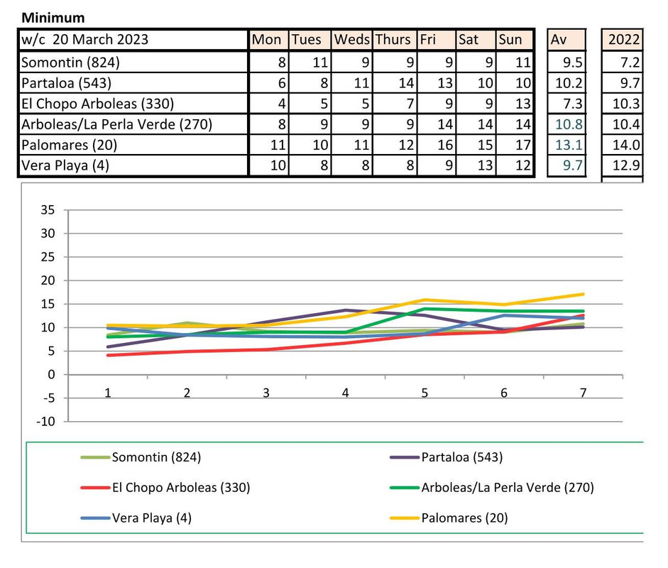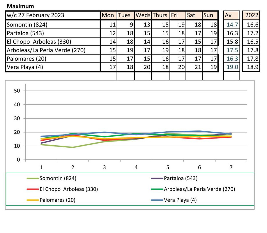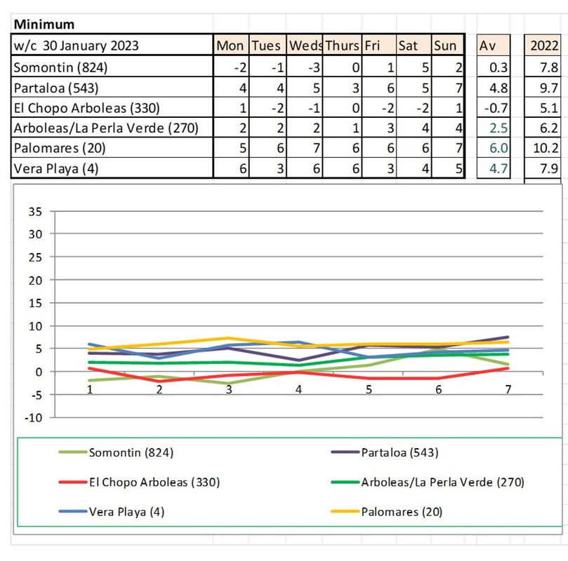 From 9th - mostly warmer this year (off to Baza on Monday - it says -5 - feels like -12!!!!)