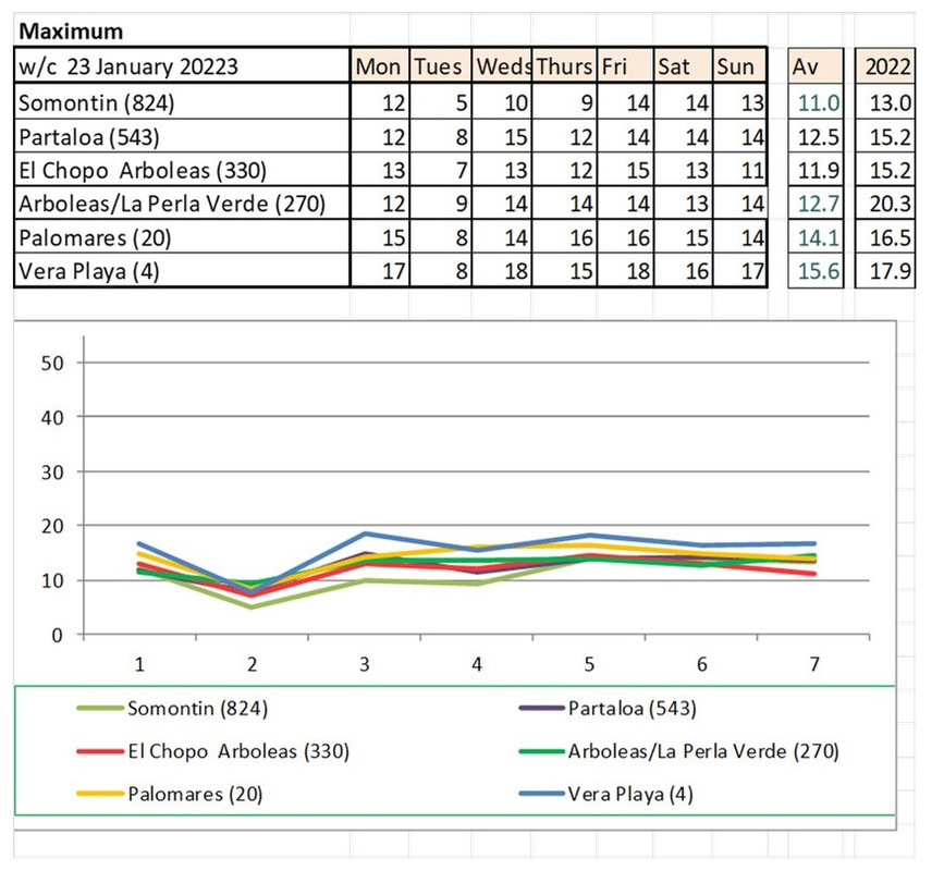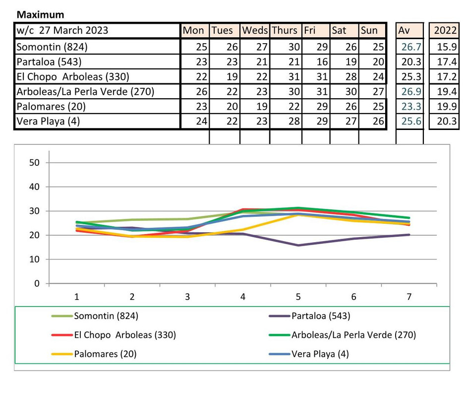 Temperatures in Somotin are amazing, normally we have 'special' weather here in Partaloa but seems it has been a bit cold over the last couple of weeks, Dave said it has been hot but I guess that is the sun temperatures not the shade!