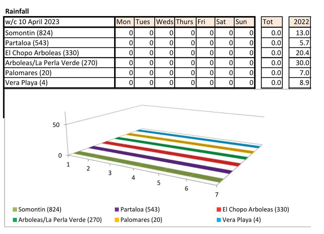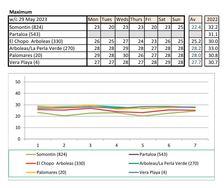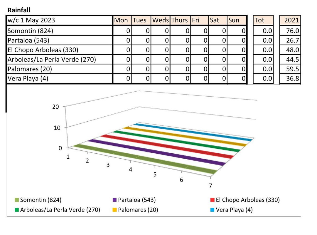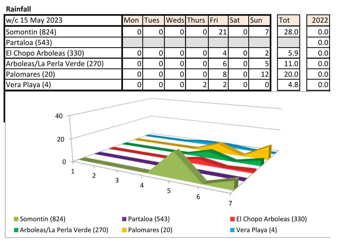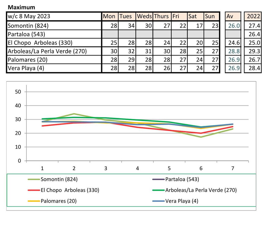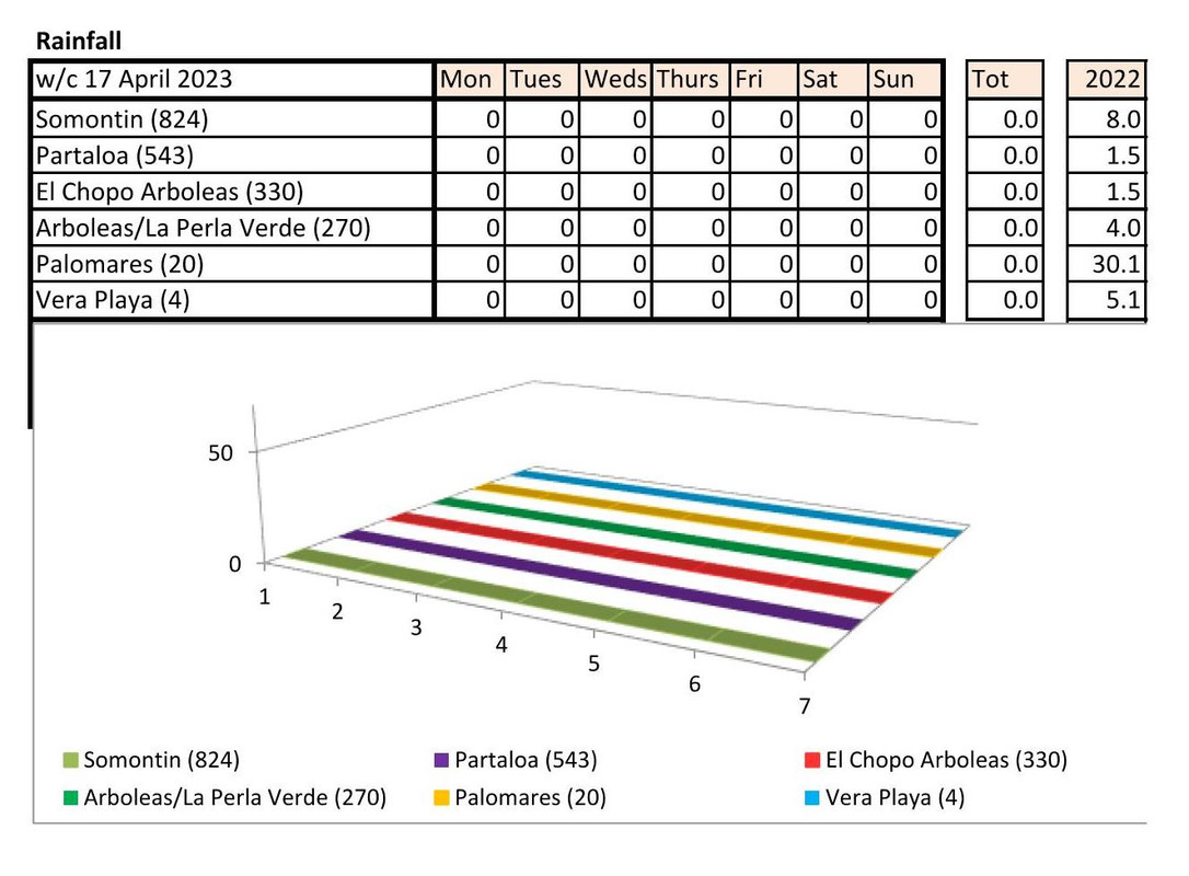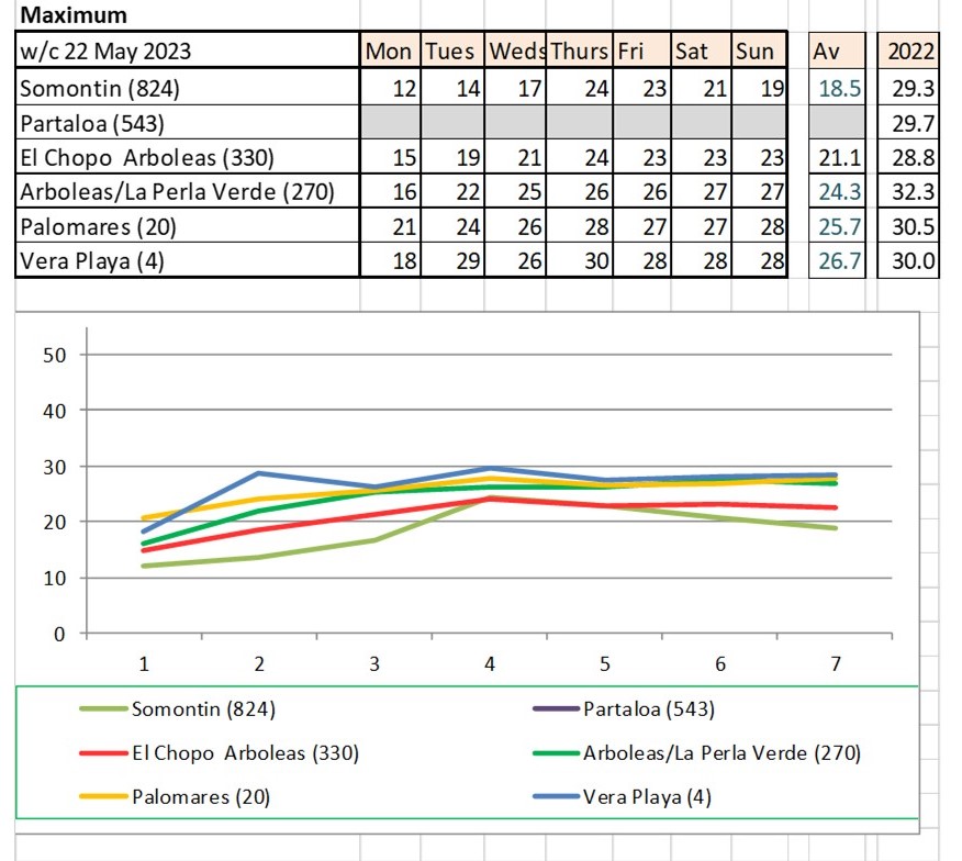 From 12th June. Warmer last year. No rain last year, trace of rain this year Vera Playa on Monday and Friday - .01.. doesn't show on graph