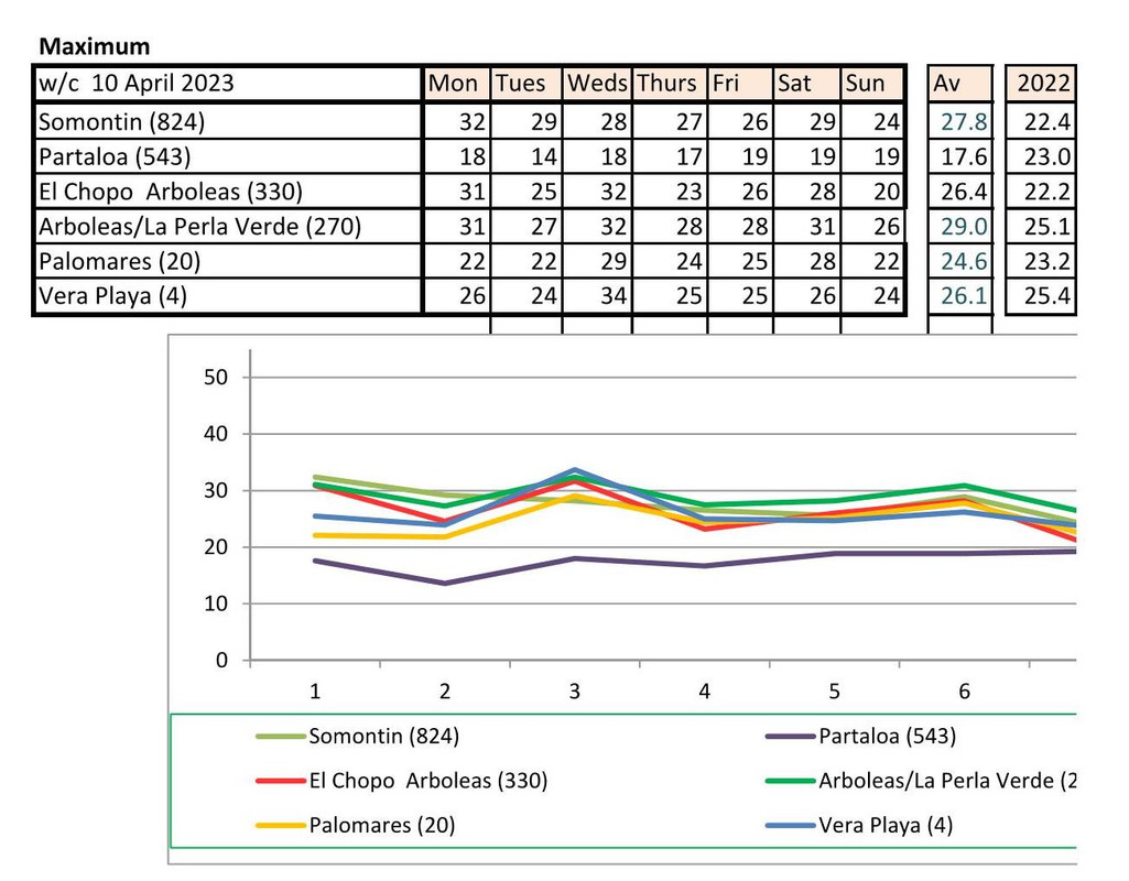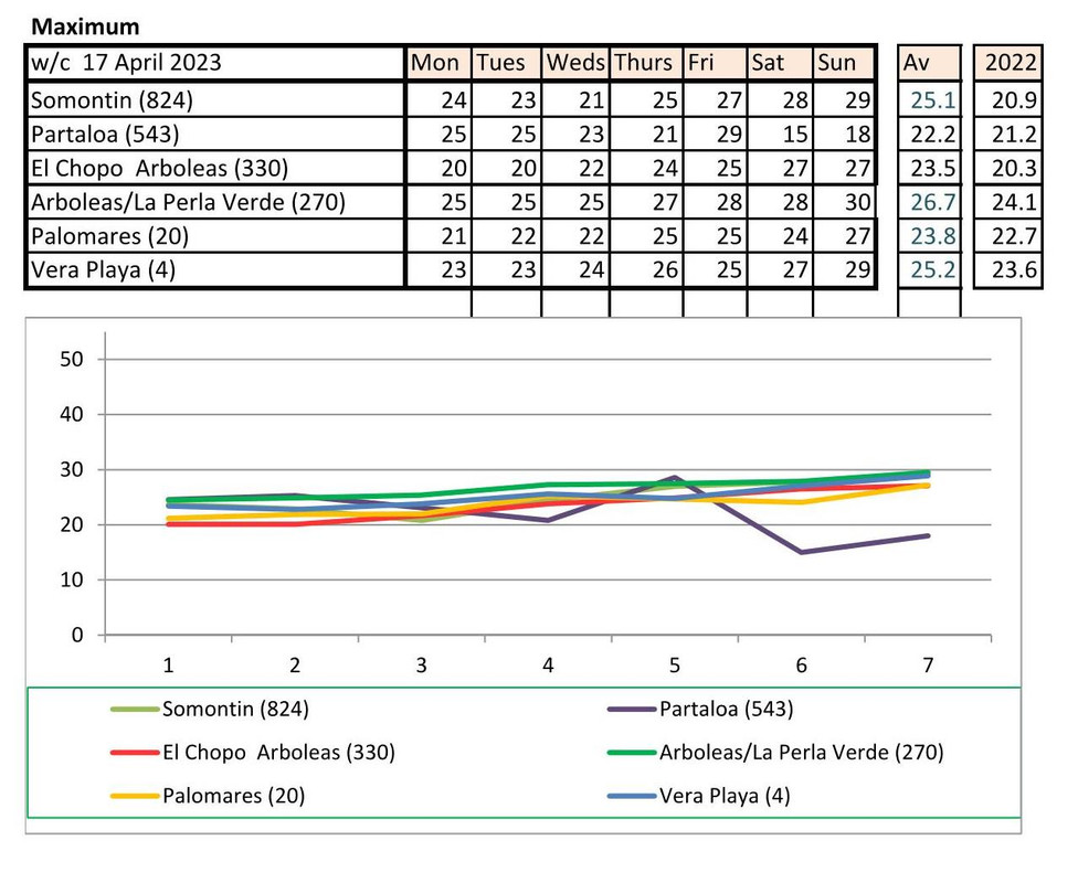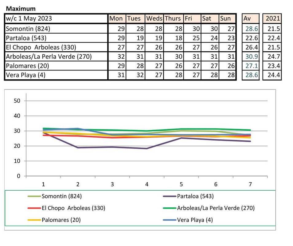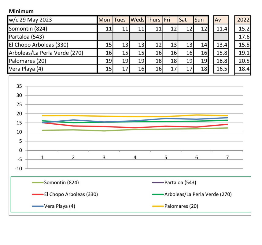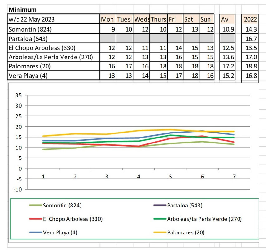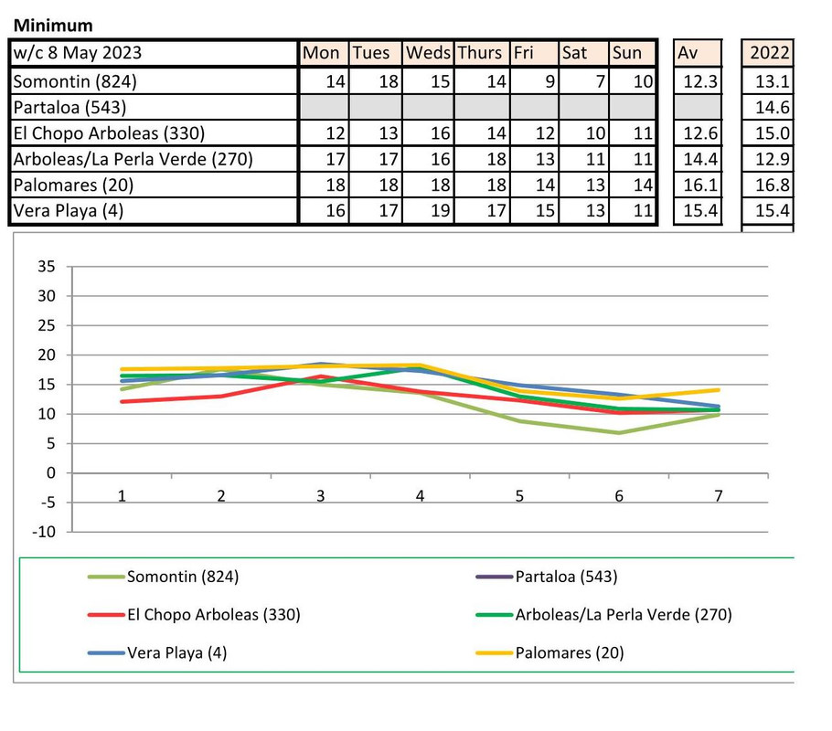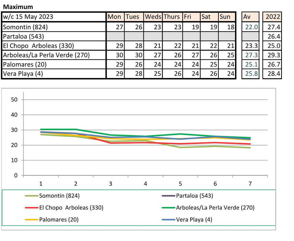 From 12th June. Warmer last year. No rain last year, trace of rain this year Vera Playa on Monday and Friday - .01.. doesn't show on graph