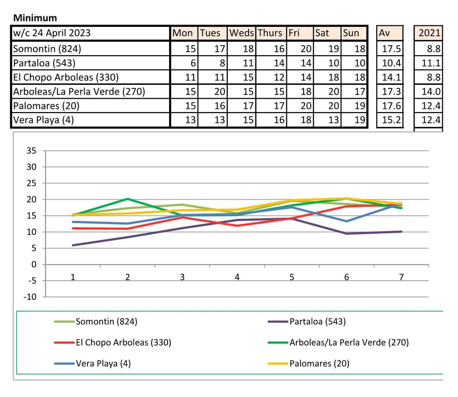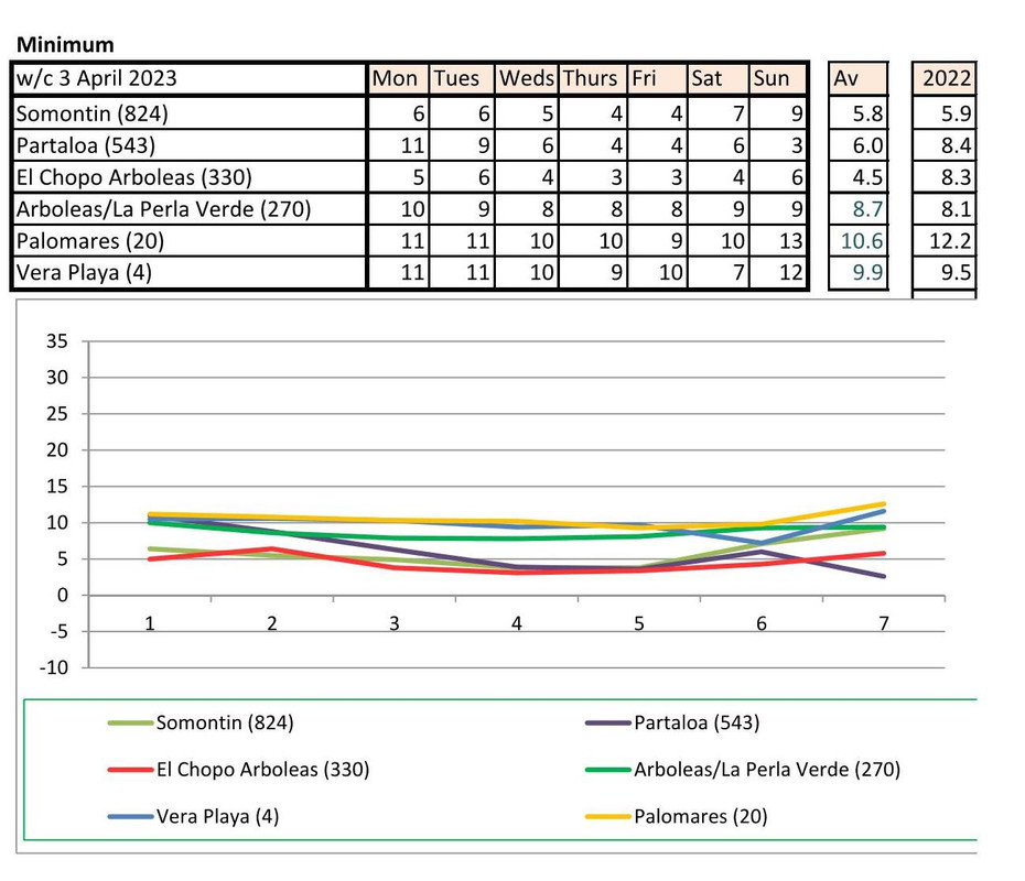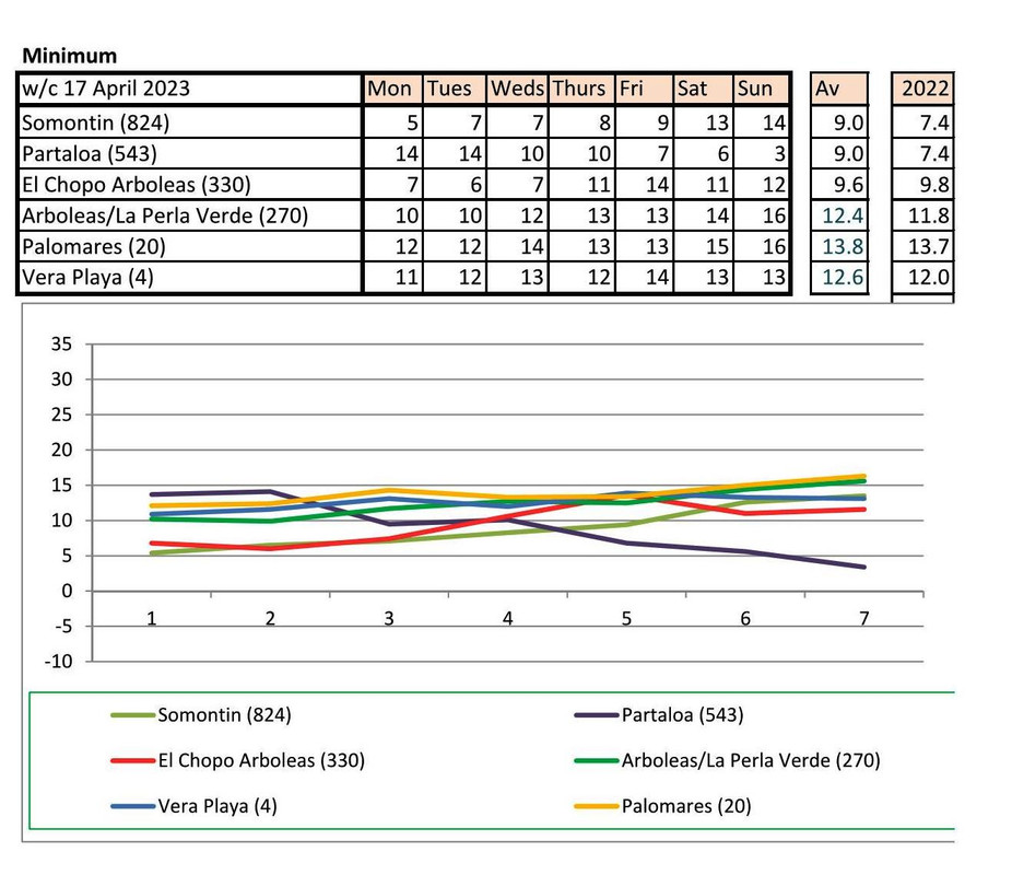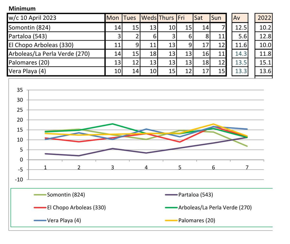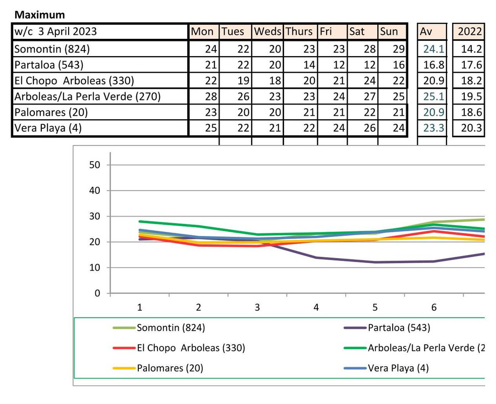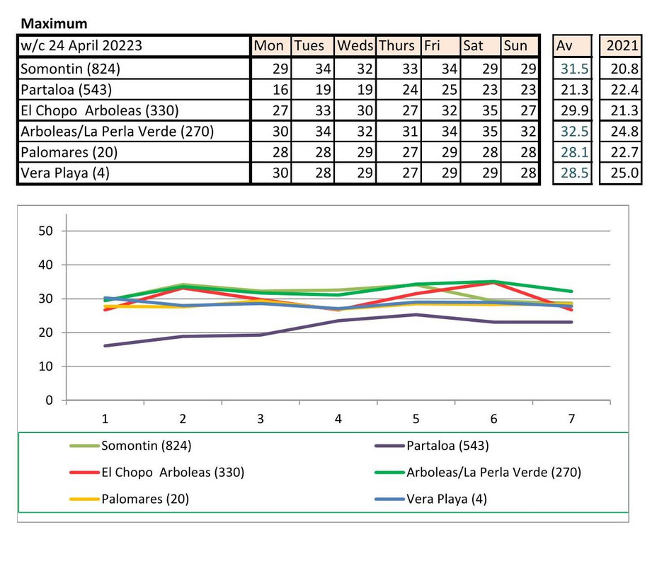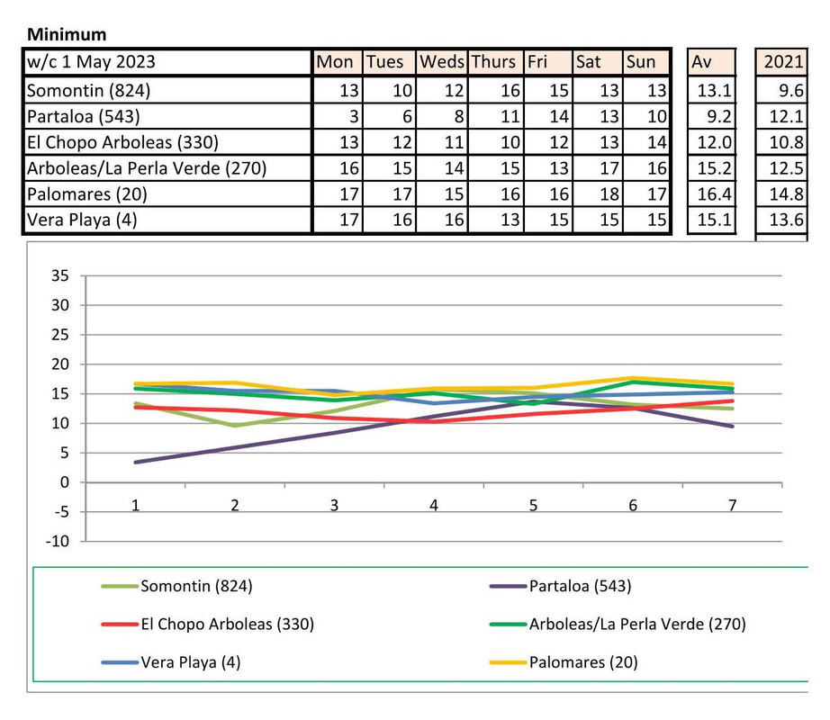 From 12th June. Warmer last year. No rain last year, trace of rain this year Vera Playa on Monday and Friday - .01.. doesn't show on graph