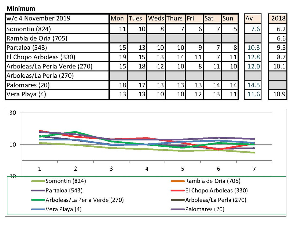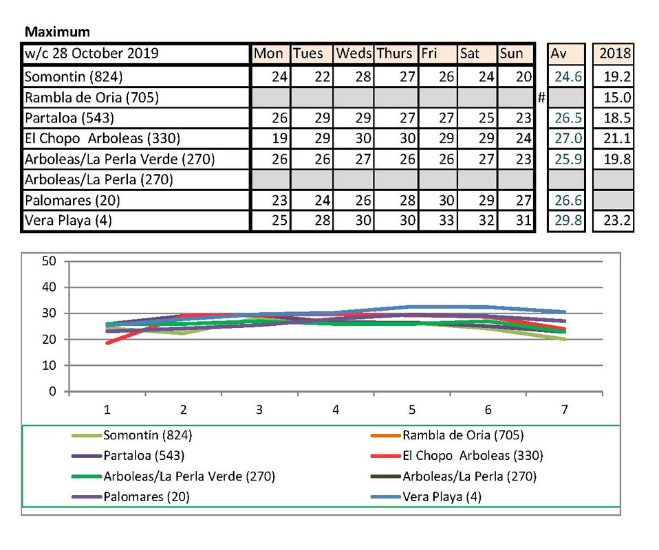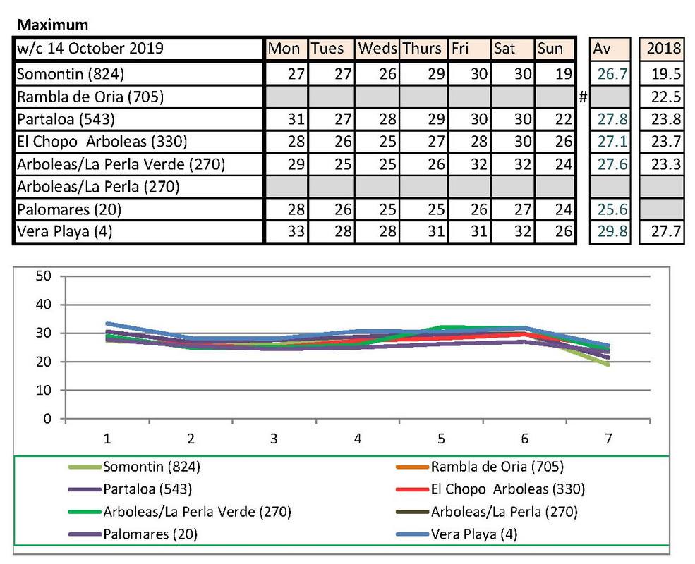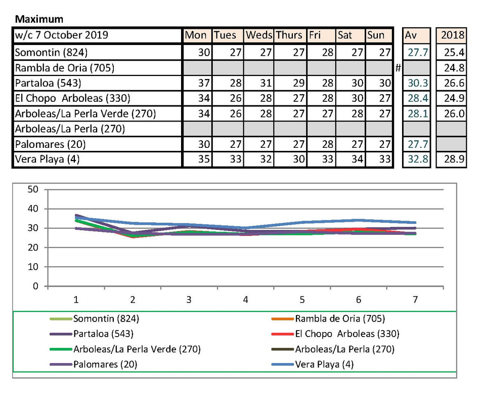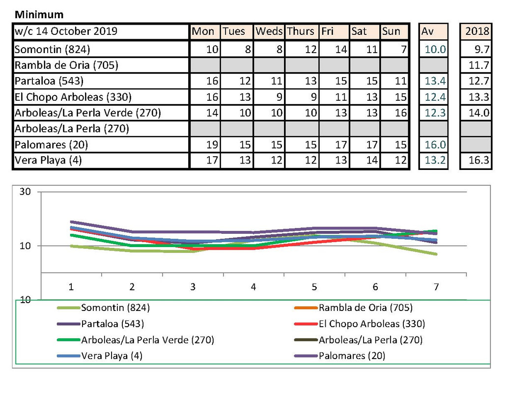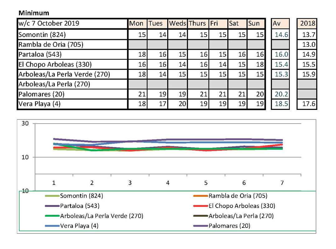 Jan's going to notice a big difference down at Palomares than Rambla de Oria. I shan't be able to compare my temps with hers any more. Isn't there someone living higher up who could contribute each week?