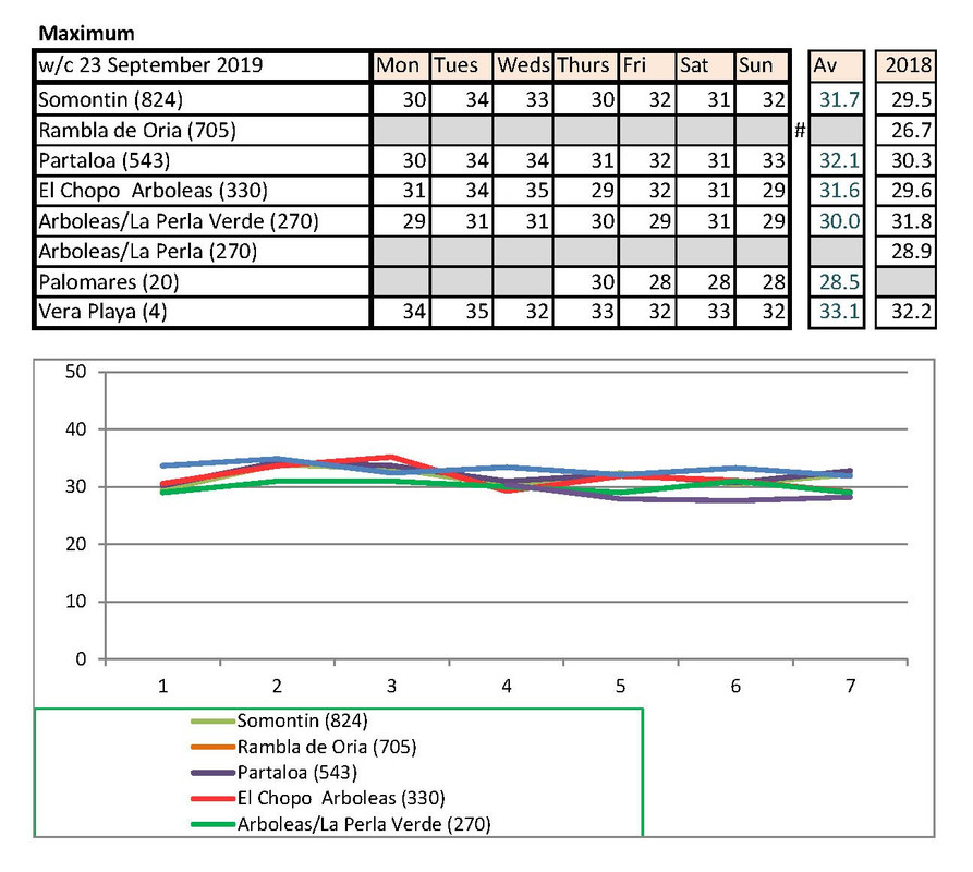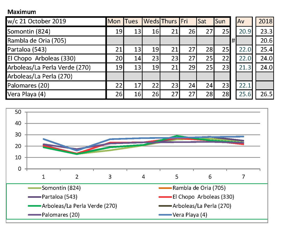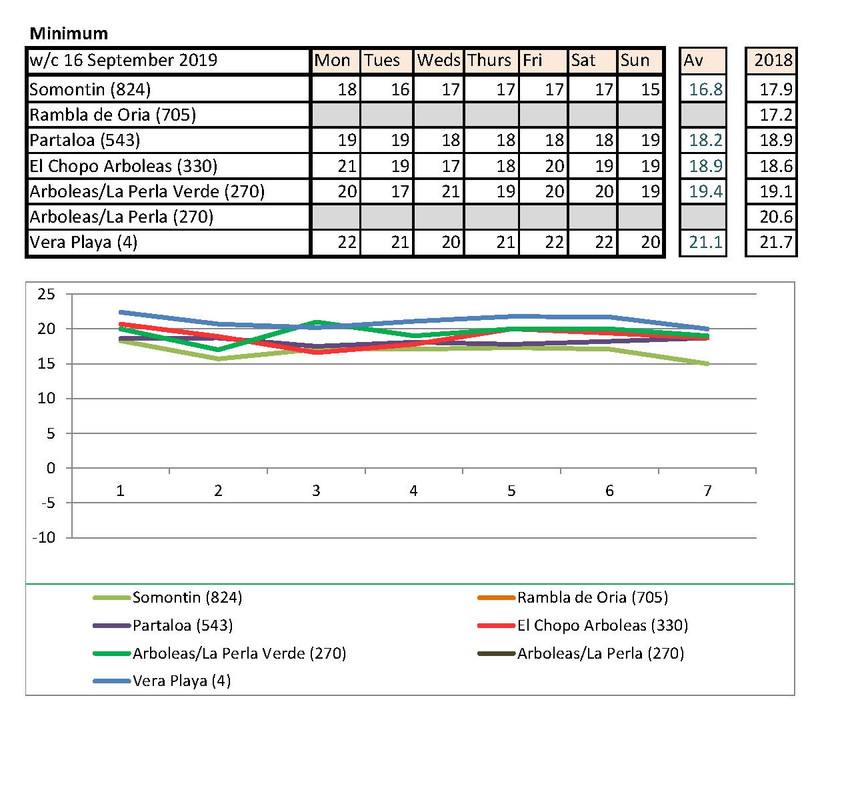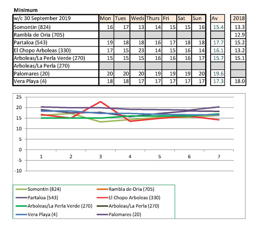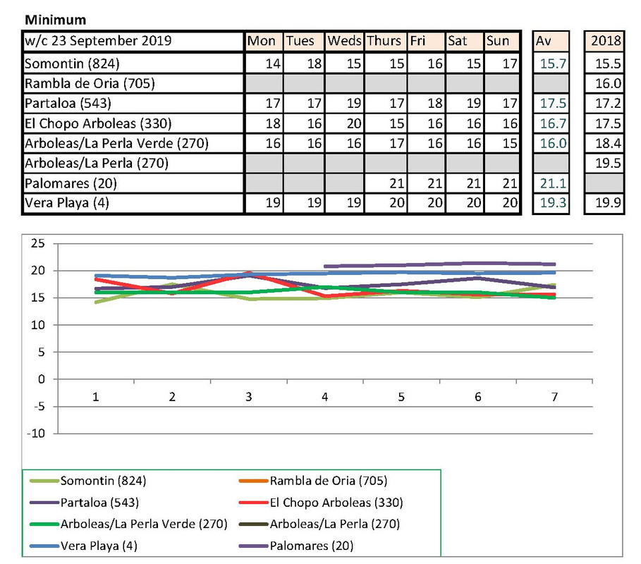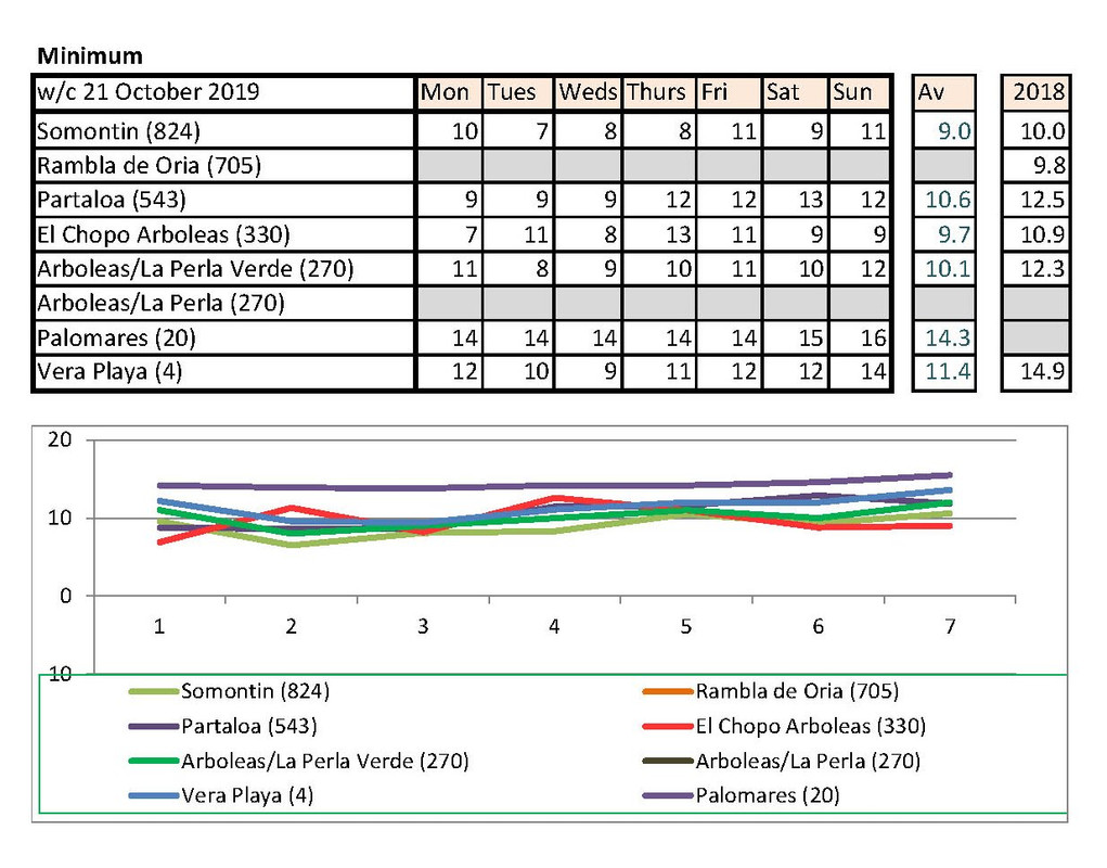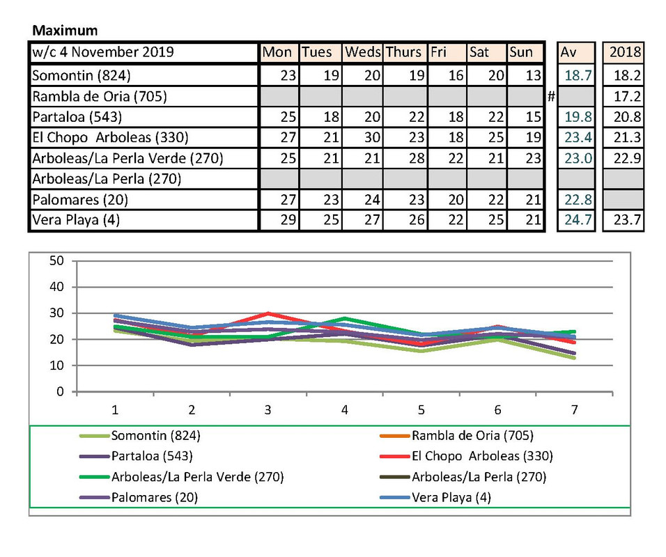 Jan's going to notice a big difference down at Palomares than Rambla de Oria. I shan't be able to compare my temps with hers any more. Isn't there someone living higher up who could contribute each week?