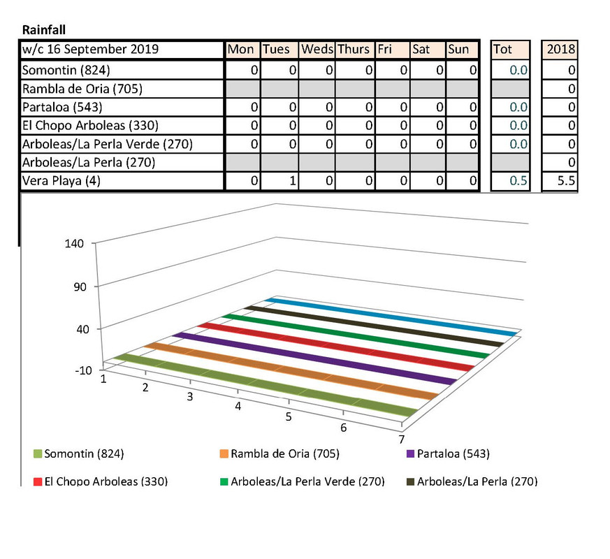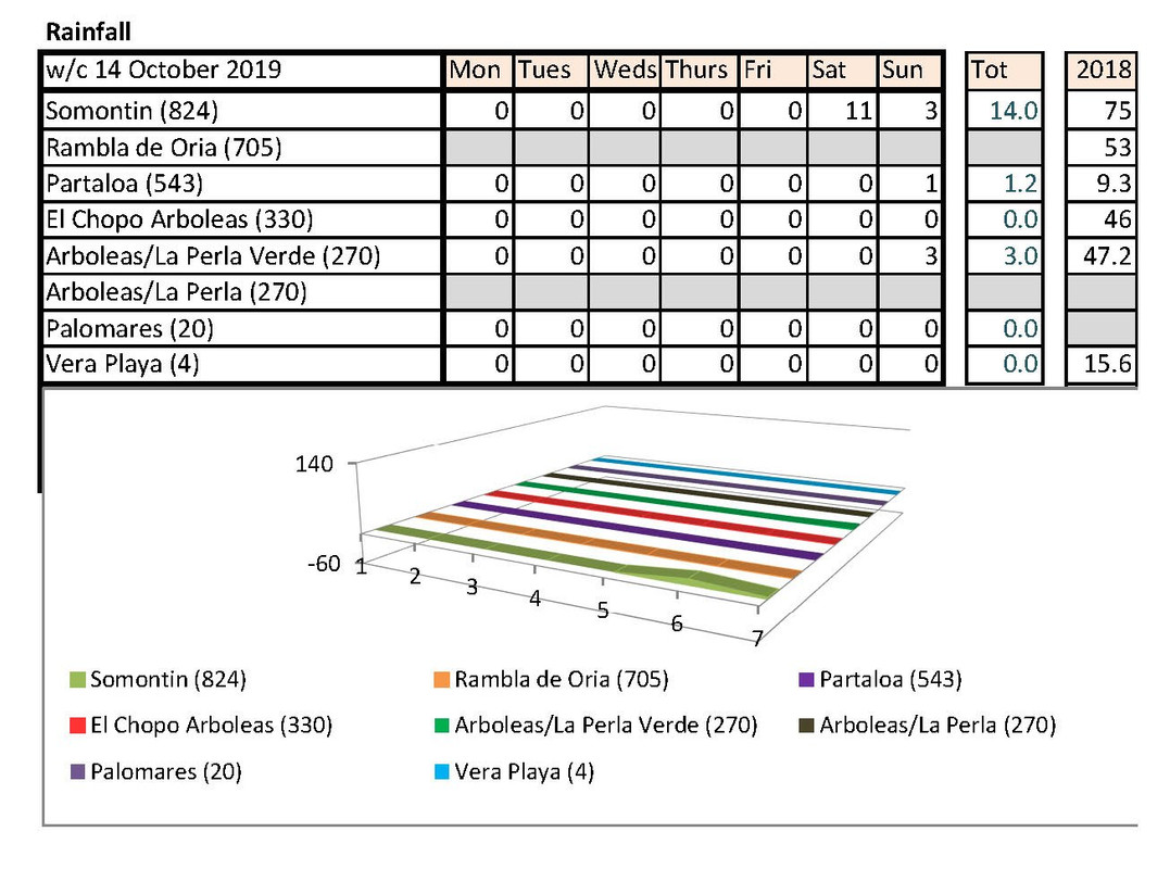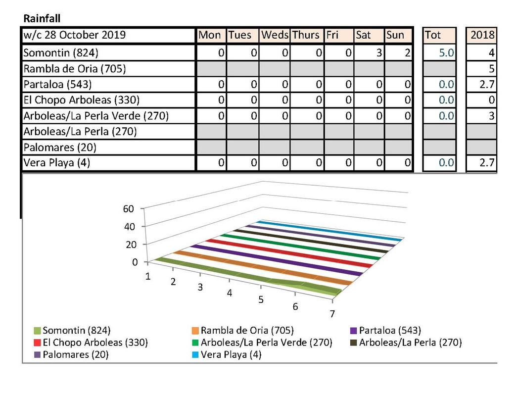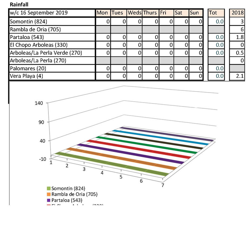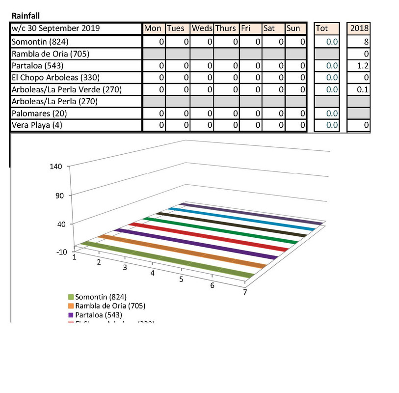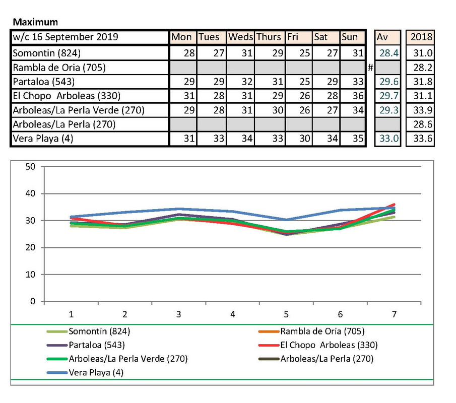Jan's going to notice a big difference down at Palomares than Rambla de Oria. I shan't be able to compare my temps with hers any more. Isn't there someone living higher up who could contribute each week?