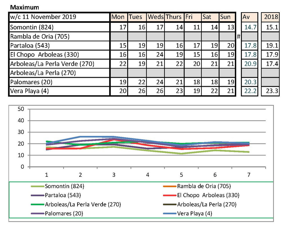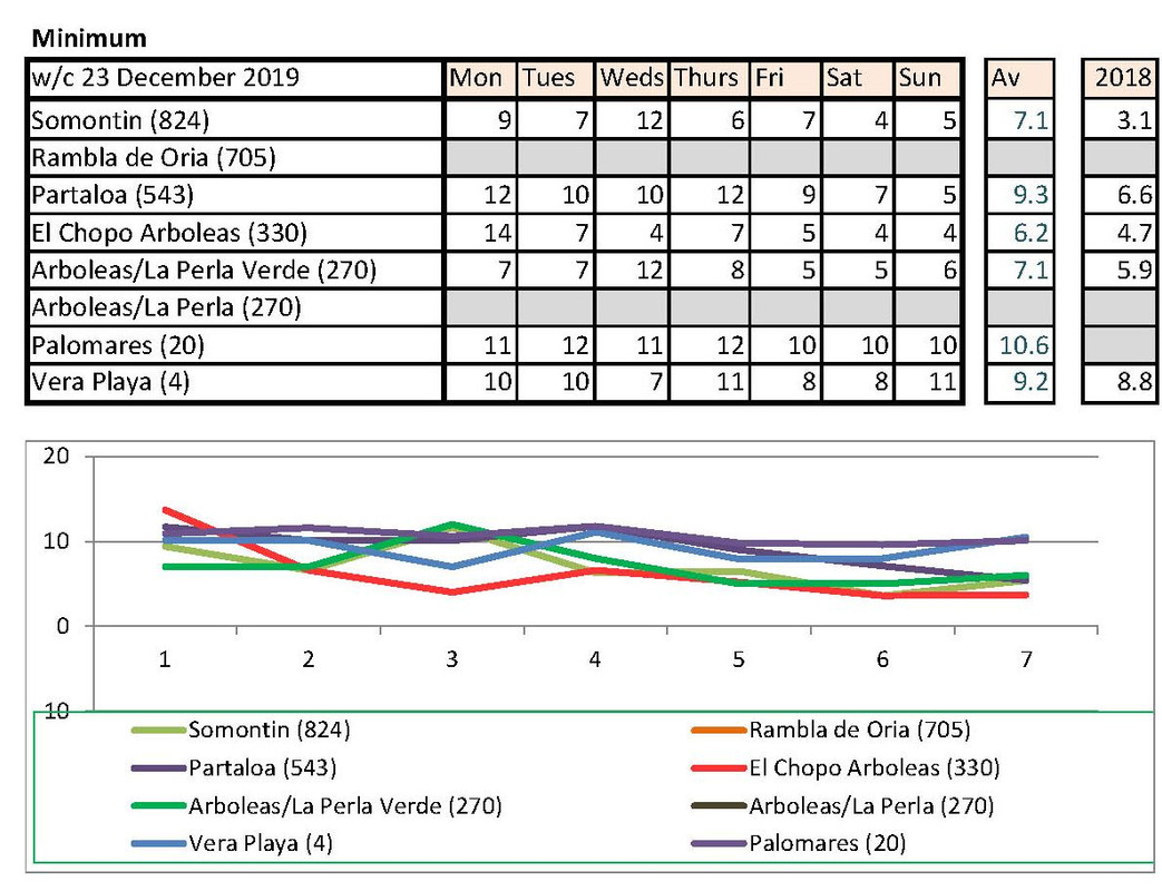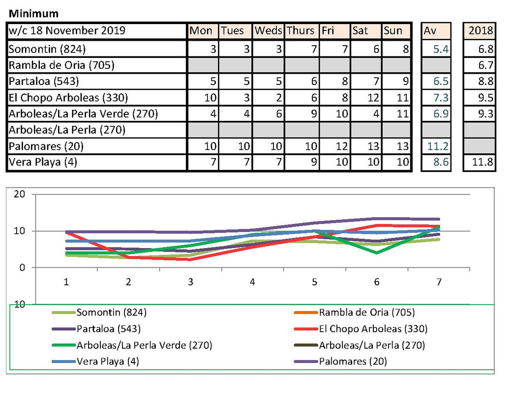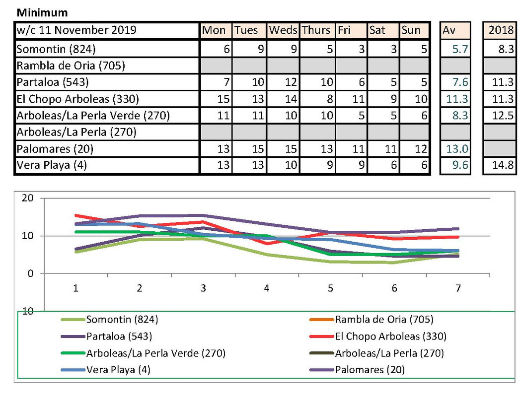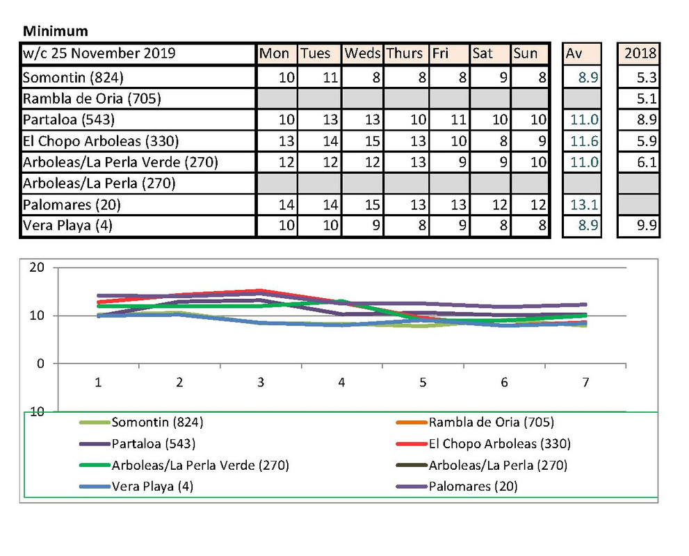 From 2nd, much warmer last year. I have checked with Vera Playa and that low is correct. He says sometimes they get really cold winds off the sea