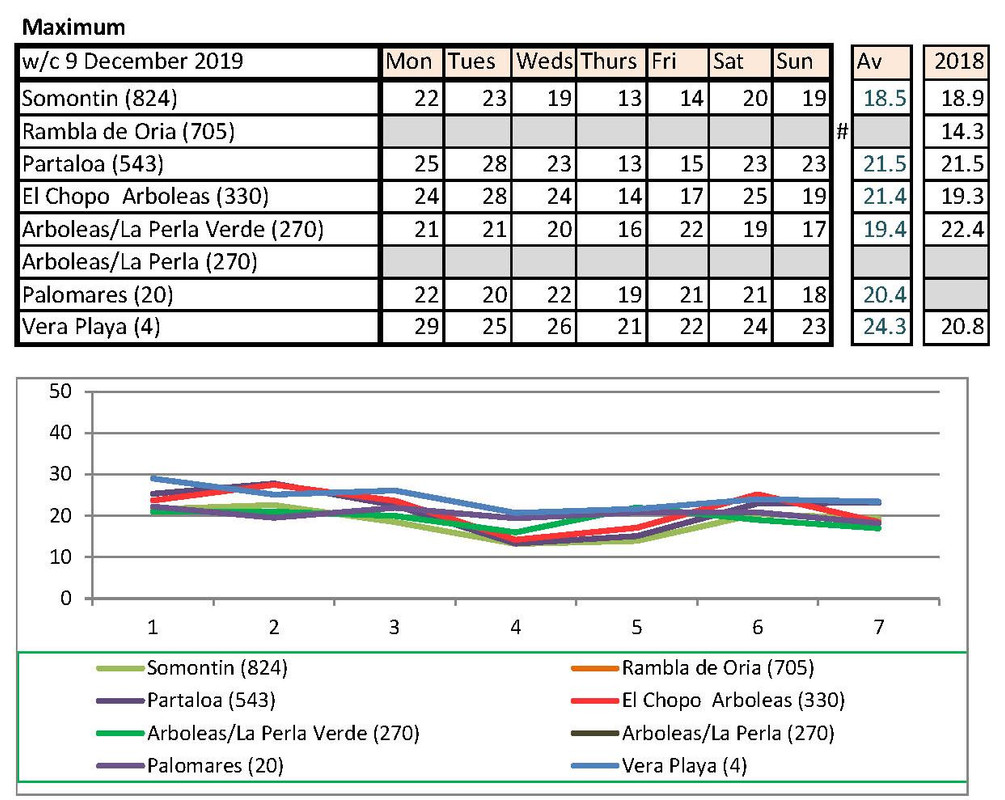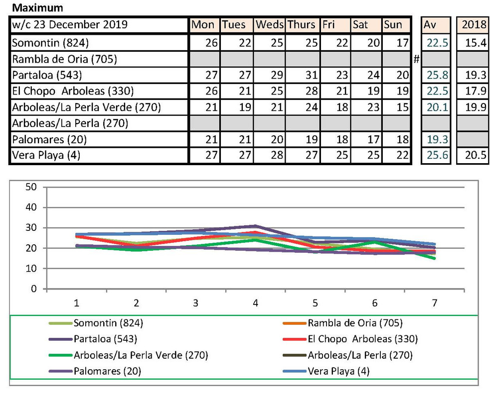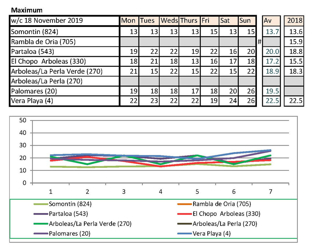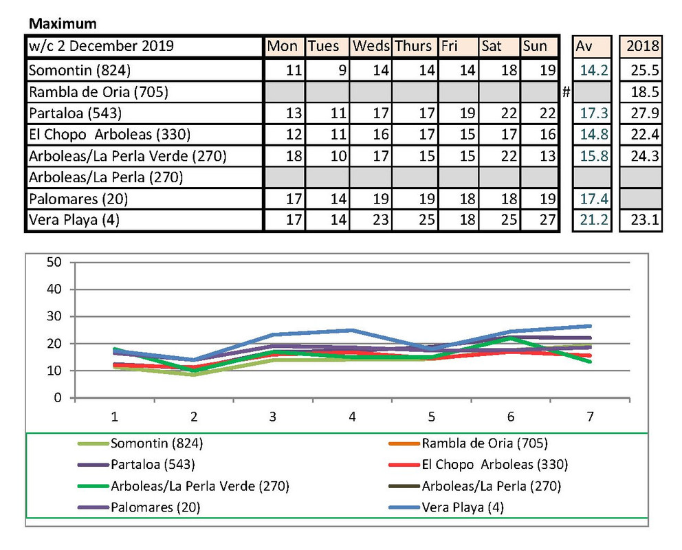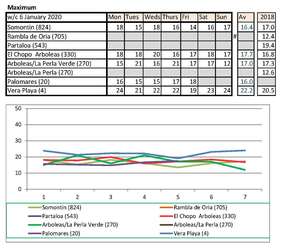 From 2nd, much warmer last year. I have checked with Vera Playa and that low is correct. He says sometimes they get really cold winds off the sea