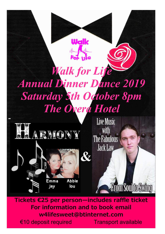 We are very sorry but due to circumstances beyond our control we have had to change the venue. It will be on the same day, Saturday October 5th, at the same time 7.30 for 8.00 but it will now be at the OVERA HOTEL. The price will be €25 and you will be entertained by Jack Law and Harmony. Transport will be available at an extra cost.