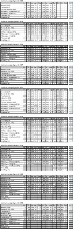 Monthly averages.  Just showing last 4 years or you wouldn't be able to read it.  The attached PDF goes back 10 years
